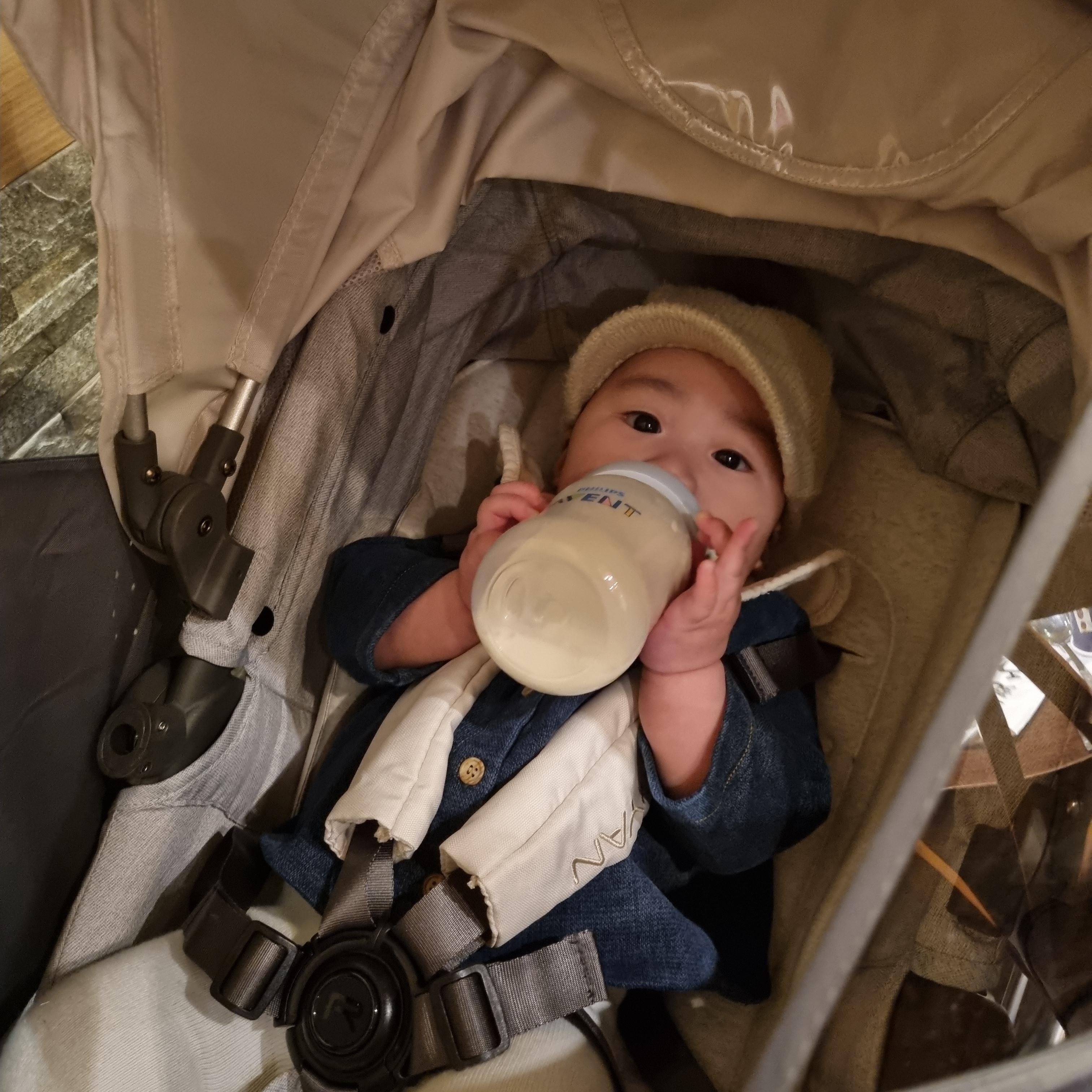 4개월무렵부터 외출시 먹었다:-)